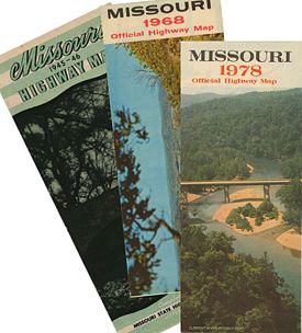 '''First maps:'''  The first Missouri road map, so far as State Highway Commission files reveal, was issued in 1851 by the federal government.  Primary consideration was given to steamboat travel.  The first road map put out by the state of Missouri was in 1918.