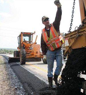 [[image:Main Page 3 June 8, 2011.jpg|300px|center|thumb|<center>'''Lebanon Intermediate Maintenance Worker Brent Jones is part of a crew repairing roadway edges on I-44 east of Lebanon.'''</center>]]