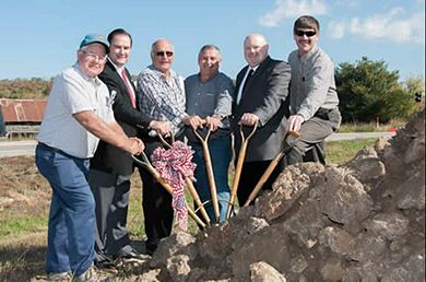 State and local officials celebrate the Oct. 15th groundbreaking for a relocated 4-lane stretch of U.S. 50 in Osage County. From left are Osage Co. 2nd Dist. Commissioner Vincent Samson, Sen. Mike Kehoe, Osage Co. 1st Dist. Commissioner Elmer Senevey, Osage Co. Presiding Commissioner Dave Dudenhoeffer, Central District Engineer Dave Silvester and Linn Mayor Dwight Massey.