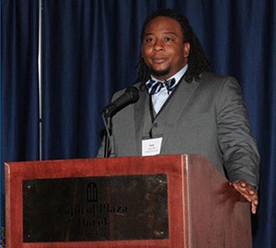 On behalf of Kansas City Scout, Traffic Center Manager E. Jason Sims addresses the 2013 ITS Heartland Conference after receiving the 2013 ITS Heartland Best Project in the Heartland Award.