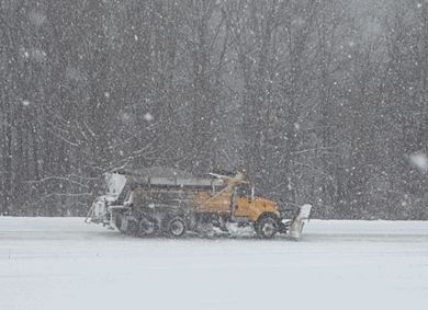 Crews are very busy plowing and treating roads in much of the state. Above, is an early view of the storm from the Fredericktown Shed. Below, part of a MoDOT crew plowing snow near Willow Springs.