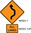 Option. Where two or more lanes are being shifted, a WO24-1 (or Double Reverse Turn sign showing one lane) sign with an ALL LANES (WO24-1cP) plaque may be used instead of a sign that illustrates the number of lanes.