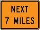 Option. In combination with a warning sign, a Supplementary Distance (WO7-3aP) plaque with the legend NEXT XX MILES may be used to indicate the length of highway over which a work activity is being conducted, or over which a condition exists in the TTC zone.