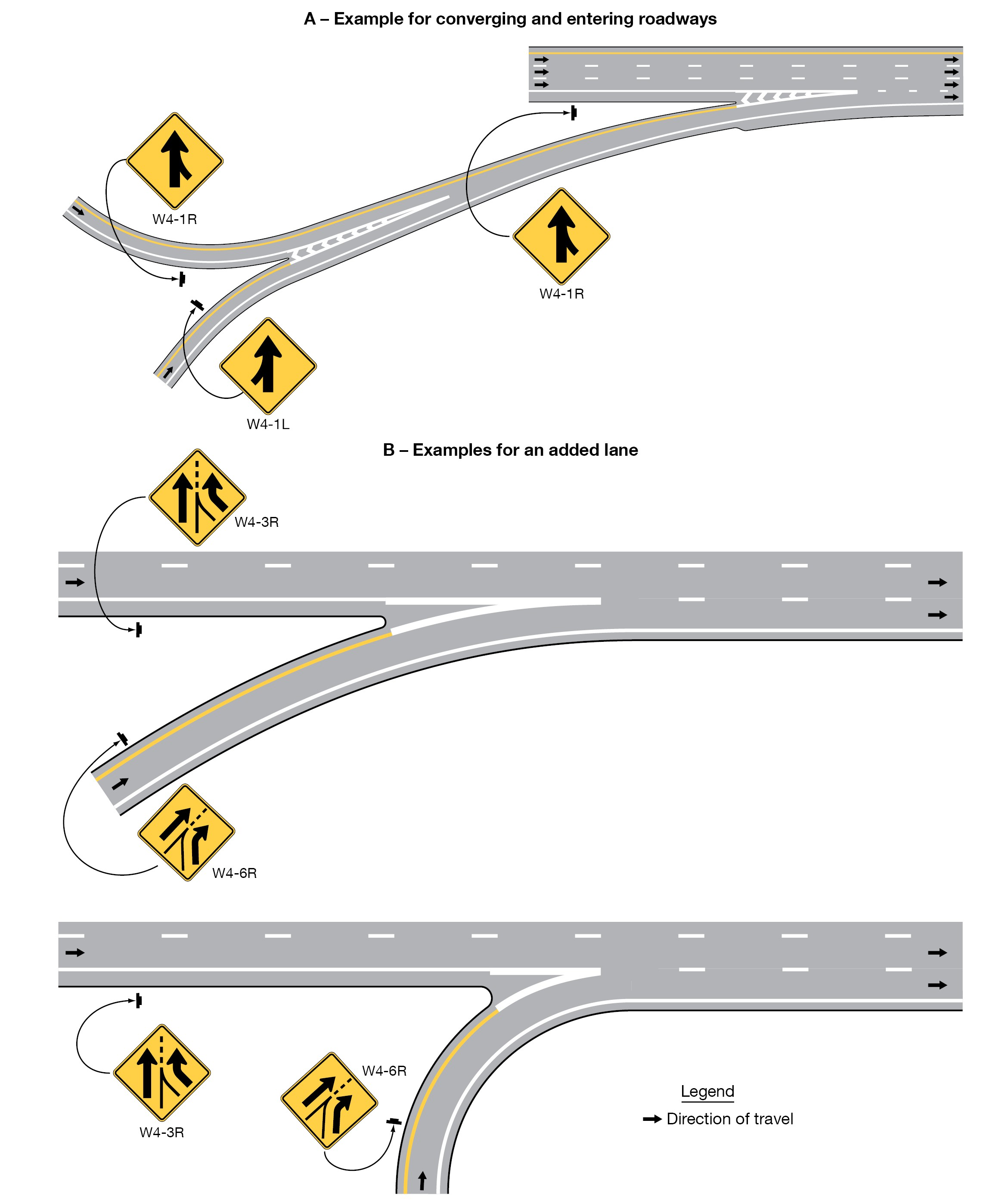 - (download) Figure 903.3.29.Examples of Merge and Added Lane Sign Placement for Entering and Converging Roadways.png . . 900 × 689 . . 67 KB . . TaracksA . . 13:06, 3 November 2025