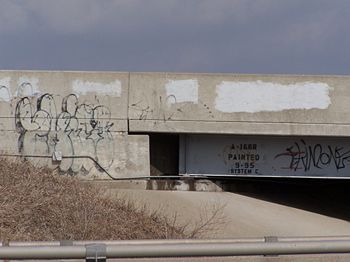 Visual inspections will be conducted on randomly selected mainline bridges and overpass bridges located within the roadway segment in the spring to identify exposed reinforcing steel, loose concrete and graffiti visible from the interstate roadway. Visual inspections will be performed on all mainline and overpass bridges in the fall to determine the substructure rating.