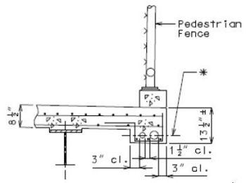 Part Elevation of Safety Barrier Curb over Slab Showing Perimeter Steel