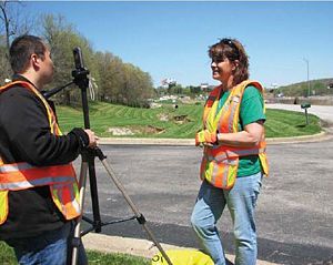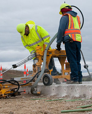 Maintenance workers Francisco Bejarano and Patrick Wulff replace a section of concrete on US 50 in Cole County.
