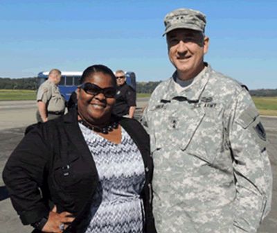 Multimodal Div. Sr. Construction Inspector Tamara Pitts joined Missouri Air National Guard Major General Stephen Danner for the recent groundbreaking for the new $5.8 million runway at the Rosecrans Memorial Airport in St. Joseph. The Missouri Air National Guard uses Rosecrans Memorial Airport for training on the C-130 Transport plane.