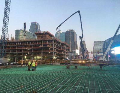 Clarkson Construction Company crews pour concrete for the new Grand Ave. bridge over I-670 in downtown Kansas City. The project is expected to reopen Grand Ave. to traffic by Dec. 1.