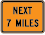 Standard. The Supplementary Distance plaque with the legend NEXT XX MILES shall not be used in conjunction with any sign other than a warning sign, nor shall it be used alone. When used with orange TTC zone signs, this plaque shall have a black legend and border on an orange background.