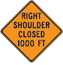 Guidance. On freeways and expressways, the RIGHT (LEFT) SHOULDER CLOSED XX FT or AHEAD (WO21-5b) sign followed by RIGHT (LEFT) SHOULDER CLOSED (WO21-5a) sign should be used in advance of the point where the shoulder work occurs and should be preceded by a ROAD WORK AHEAD sign.