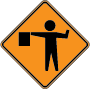 Guidance. The Flagger (WO20-7) sign should be used in advance of any point where a flagger is stationed to control road users. These signs should be displayed when a flagger is present and should be covered or removed when the flagger is not present.