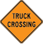 Option. TRUCK CROSSING (WO8-6) and TRUCK ENTRANCE (WO8-6c) signs may be used to alert road users to locations where unexpected travel on the roadway or entries into or departures from the roadway by construction vehicles might occur.