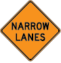 Option. The NARROW LANES (WO5-5) sign may be used on multilane highways where the lane width is temporarily reduced.