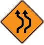 Where more than three lanes are being shifted, the Double Reverse Curve (or Turn) sign may be rectangular.