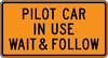 Guidance. The 18 x 12 inch PILOT CAR IN USE WAIT & FOLLOW (GO20-4a) should be used on all other non-state routes (city streets, county roads, etc.).