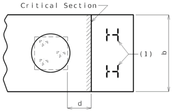 2) For simplicity, when calculating VU, the maximum pile reaction may be assumed to act on all piles located outside the critical section.
