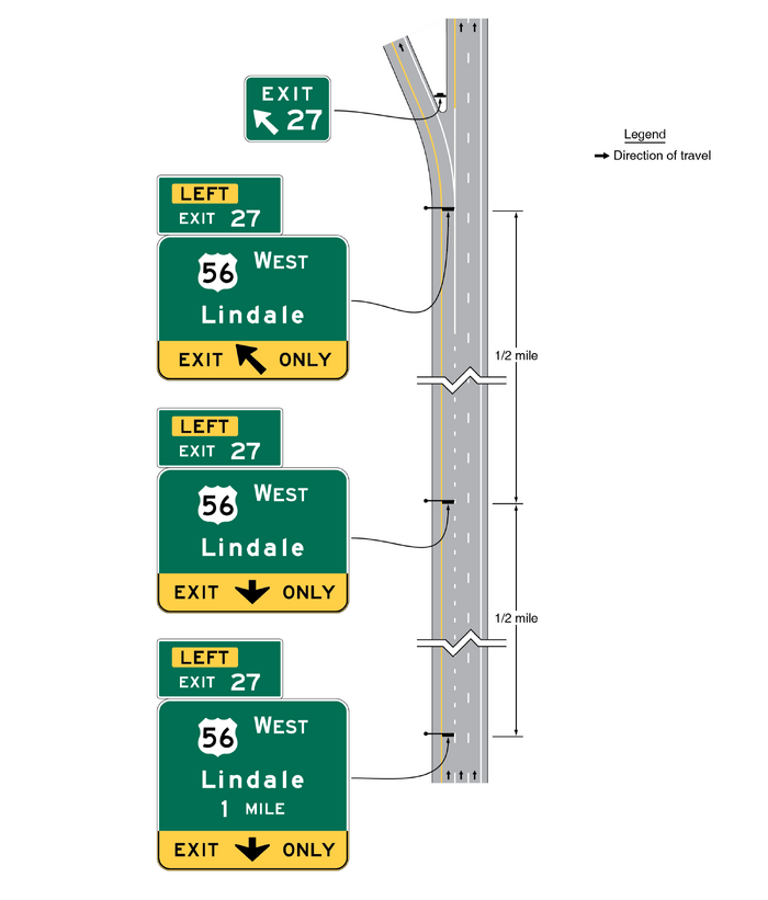 - D. Display of advance signs at distances closer to the interchange, with appropriate adjustments in the legend (see EPG 903.5.23);