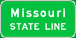 The MISSOURI STATE LINE (I2-1) sign shall be erected at the state line on all lettered routes without interfering with higher-priority traffic control devices.