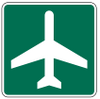Airport (I3-5) Symbol sign, with an arrow plaque, may be used as a trailblazer for commercial airports. The Airport (I3-5) Symbol may be included on primary guide signs for exits which lead motorists in the direction of commercial airports.