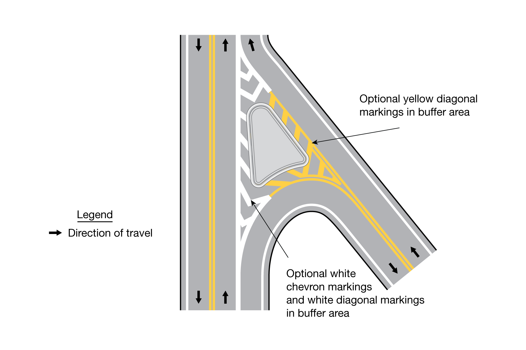 File:F03J-05 Fig3J-5 ExamplesOfOptionalChevron-DiagonalPavementMarkingsAtRaisedIsland.png