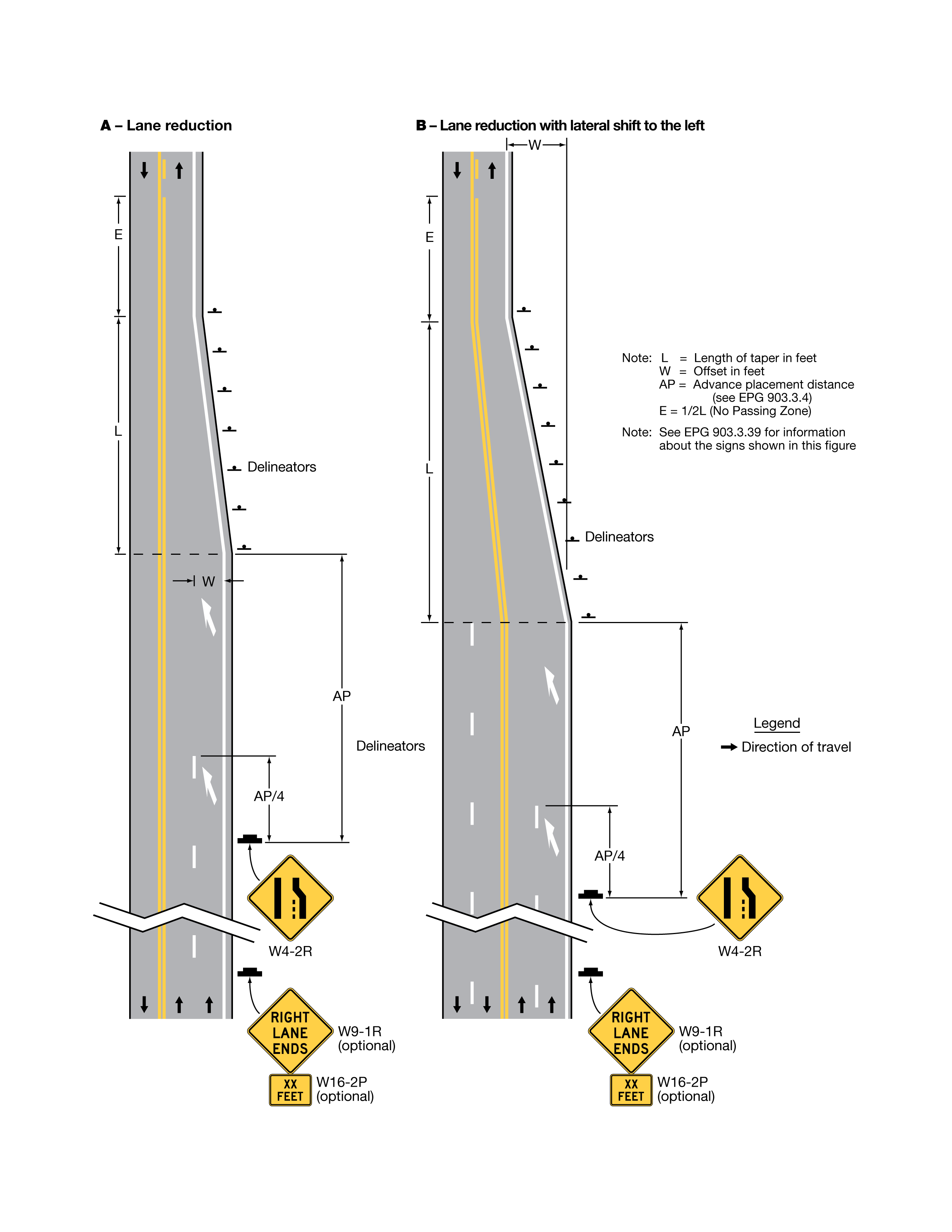 File:Figure 620.2.14 Examples of Applications of Lane-Reduction Transition Markings.png